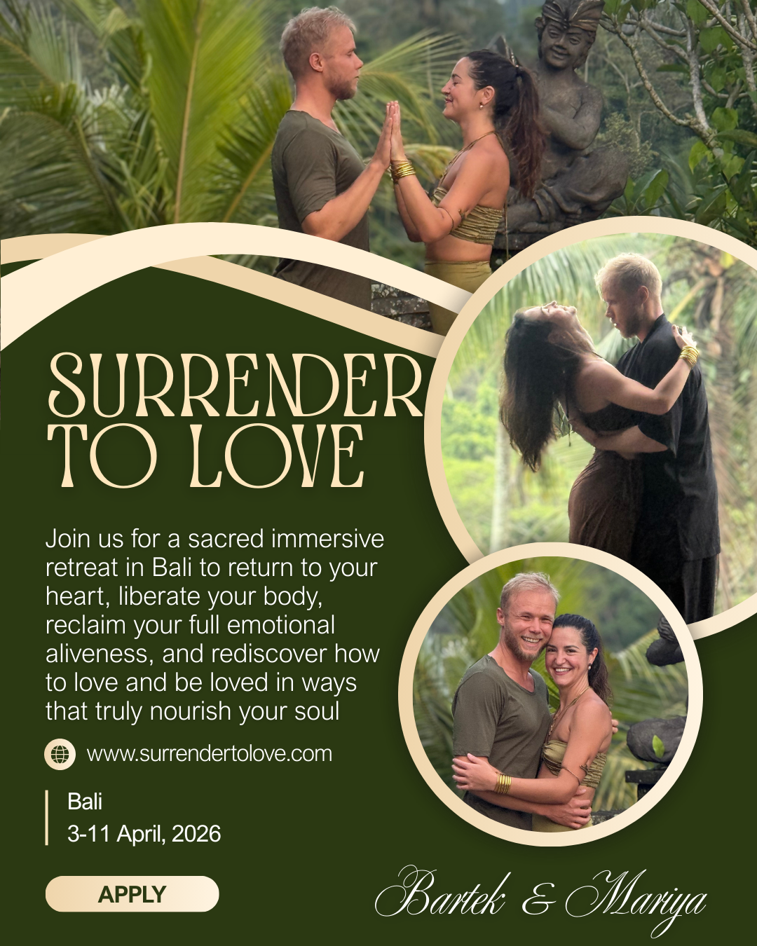 Surrender to Love is a sacred immersion in Bali where we unravel the layers that harden us — and remember the soft, steady power of love that has always been within.